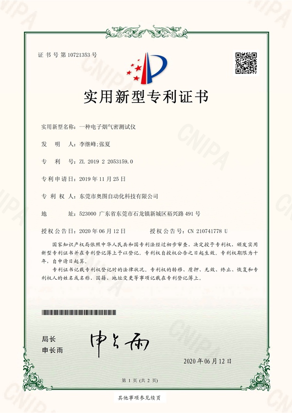 電子煙氣密測(cè)試儀專利
